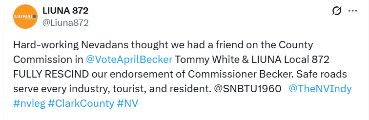 Within hours, LIUNA Local 872 publicly rescinded their endorsement of her, blasting her decision as a betrayal of workers, safety, and infrastructure needs. But the attack ignores a critical truth: Becker’s lone “no” vote wasn’t anti-worker. It was anti-blank-check taxation and pro-transparency—a stance many hard-working Nevadans desperately want to see more of.
